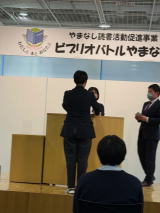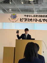 校内のビブリオバトルを制した天翔さんが、県で行われたビブリオバトルに参加しました。県立図書館を会場に5分間で熱く本を紹介した結果……中学生の部チャンプ本に選ばれました!!全国大会への出場権を得ることができました!おめでとうございます!!