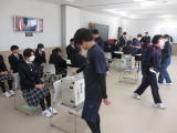 今週は3日間、音楽の授業に箏曲で若林先生がきてくださり、全クラス2時間ずつ学んでいます。2年A組の授業では、「うさぎ」をきれいに奏でてていました。ペアでタブレットに演奏の様子をとり、できばえを確かめていました。3年生の授業では、SCの深澤先生が受験に向けて、ストレスマネジメントの授業を各クラスでしてくださいました。