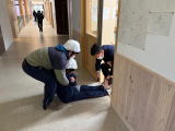 また、6校時の途中から火災想定の避難訓練をしました。警報音が鳴り響いたり防火扉が閉まっていたりする中での訓練でしたが、前日の事前学習を踏まえて、口元をタオルなどでおおったり、低い姿勢で移動しようとしたりする姿が見られました。このような訓練がいざ、というときの判断力や行動力につながります。ぜひこれを機会に普段の備えを確認しましょう。