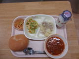 今日の給食は「ニュージーランド風 バターフィッシュ&チップス」でした。身延山高校のニュージーランドの留学生が給食に、と紹介してくれました。バターで揚げた魚とフライドポテトがよい風味でした。ニュージーランドでは金曜日の夜に食べるそうですよ。
