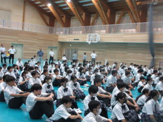 今年は6月から真夏のような暑い日が続いています。そんな中、保健委員会のみなさんが熱中症についての集会を開いてくれました。熱中症の症状などそれぞれ調べたことを発表し、全校で理解を深めたあと、自分にできる熱中症対策を個人で考えたり、部ごと集まり、各部でできる熱中症対策を考えたりしました。熱中症対策を万全にしてこれらからの学校生活を送れそうです。