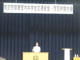交通・防犯弁論大会が本校体育館で行われました。身延中・南部中・早川中の生徒が発表者として参加しました。本校からは2年生渡邉さん、依田さんが「交通の部」3年生堀田さん、長田さんが「防犯の部」で発表をしました。自分の経験や地域の実情などを織り交ぜたわかりやすい発表でした。聴講者として2.3年生も参加しました。一人一人の発表を真剣にきいていました。どの発表も心に残るものでした。